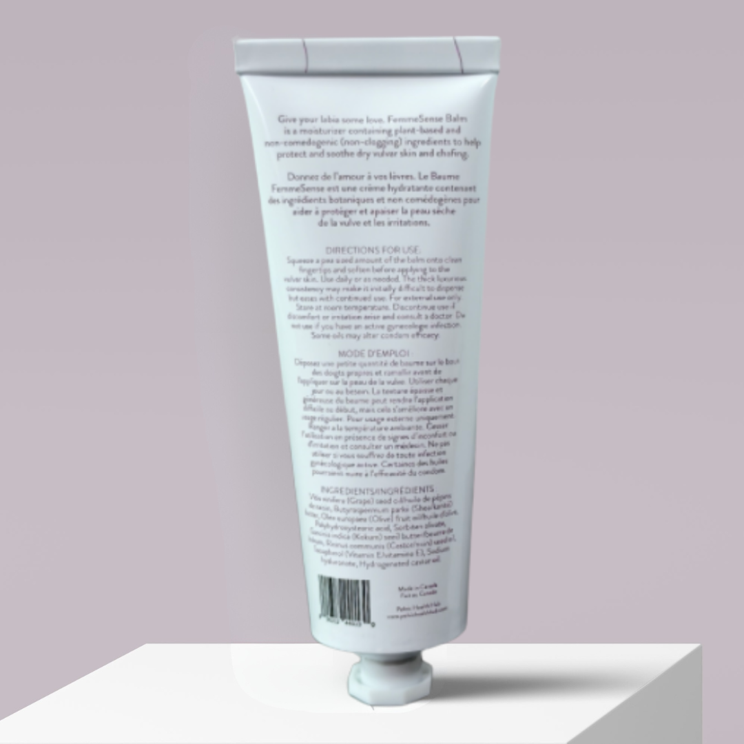 Experience soothing relief from vulvo-vaginal dryness with FemmeSense Vulva Balm - a vegan, non-hormonal vulvar moisturizer designed to alleviate dryness, itching, chafing and discomfort associated with (peri)menopause, postpartum changes, and other conditions leading to dryness and irritation of the vulvo-vaginal tissues.